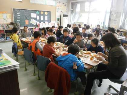 今日は2回目のキッズ班交流給食でした。前回よりもっと仲良くなった班の皆と一緒に楽しい時間を過ごしました。おいしい給食に会話も弾みます。