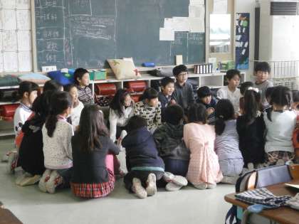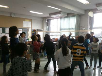 たくさん食べておなか一杯になった後は、キッズ班の皆と校庭や屋上、教室で遊びます。6年生が中心となって遊びを考え、進めてくれます。低学年は特に、お兄さん・お姉さんと一緒に遊べて嬉しそうです。
