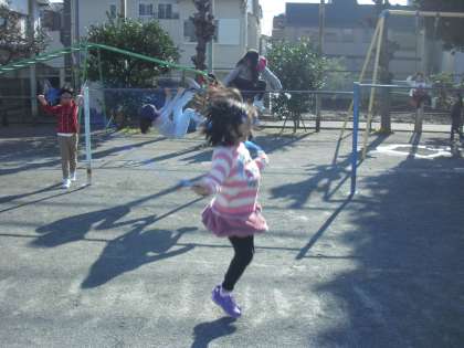 たくさんの子供たちが思い思いの遊びを楽しんでいました。鉄棒、なわとび、砂遊び。