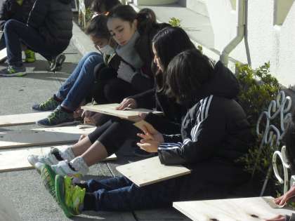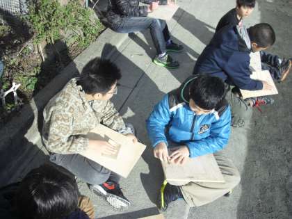 六年生が卒業制作にとりかかっていました。本棚を作ってくれるそうです。今日は、材木のやすりがけ。冬の寒い空気の中でしたが、日差しの温もりを感じながら取り組みました。六年生、ありがとう。