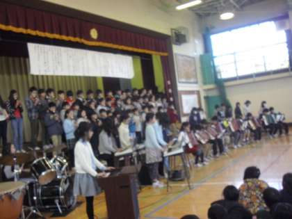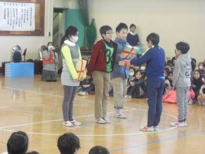 全校児童が集まって体育館で行われました。どの学年も練習の成果を発揮してすてきな歌声と合奏が響き渡りました。六年生から縦割班の引継ぎがあったり、思い出が語られたりといろいろなセレモニーもあり、あたたかい気持ちの中で会が進行しました。いよいよ登校日は20日ほどになりました。最後までがんばってほしいと思いました。写真はクラブ、委員会の引継ぎ、6年生の合奏、合奏に聞き入る1年生の様子です。