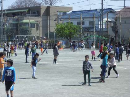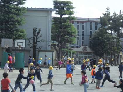 連休明け、青空のもと、元気に遊ぶ姿がありました。少し風邪が流行っているようです。