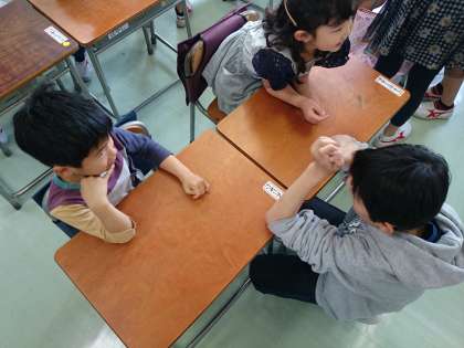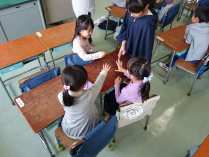 1時間目が始まるまで1年生のお世話をしています。(4月9日)