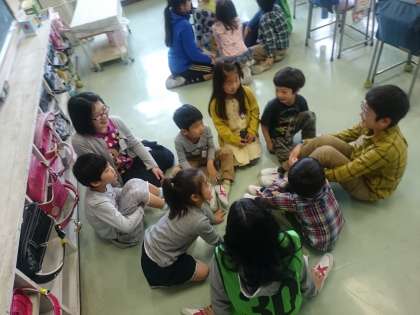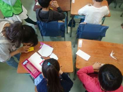 1年生を迎える会の後、6年生のお兄さんやお姉さんに折り紙やしりとりなどをして楽しい時間を過ごしました。(4月14日)