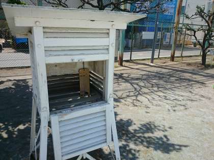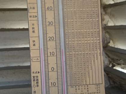 百葉箱の温度計が15度をですごしやすい日です。(4月15日)