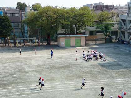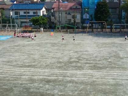 学年で、トラックのカーブの曲が 方を意識して走りました。(4月19日)