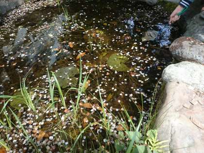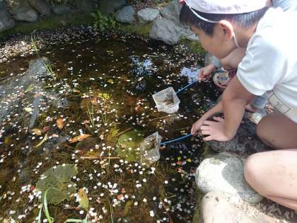 環境委員会が、ビオトープの清掃をしています。(4月20日)