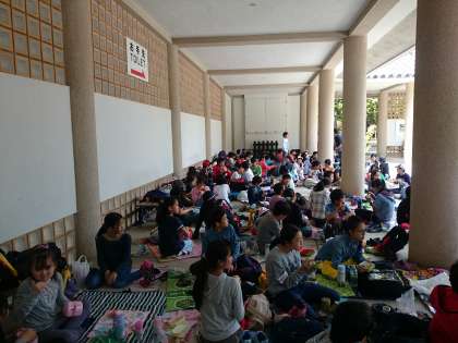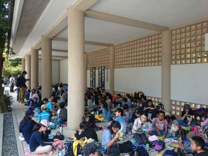 鎌倉の大仏に着きました。みんなお弁当をもりもり食べています。(4月25日)