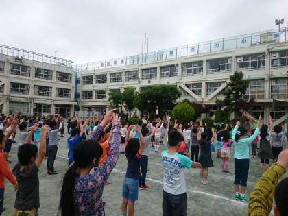 今朝は、児童朝会の前にラジオ体操をしました。(5月9日)