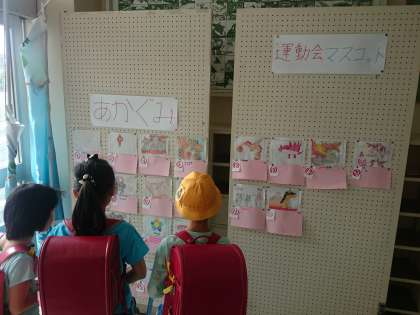 運動会のマスコットを選ぶために投票しています。(5月11日)