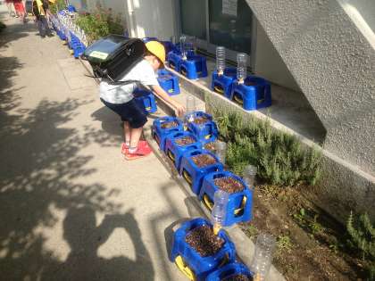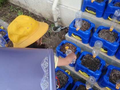 毎朝、自分が育てているアサガオに水やりをして観察をしています。(5月14日)