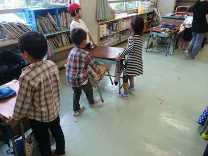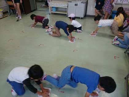 今まで6年生にお手伝いしてもらっていましたが、今では自分たちで掃除ができるようになりました。(5月17日)