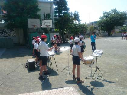運動会の音楽係が応援の練習で演奏しました。(5月19日)