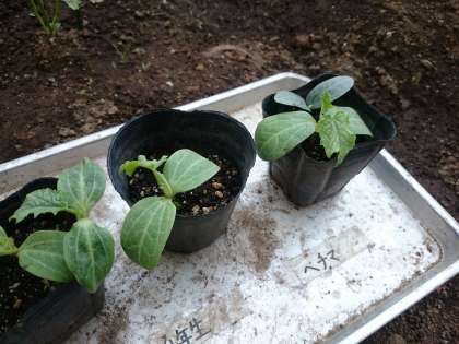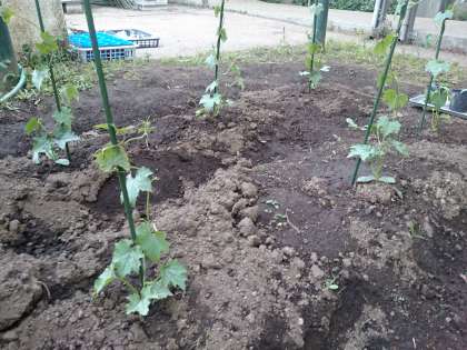 ヘチマの苗を植えてつるが伸びてきています。(5月23日)