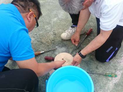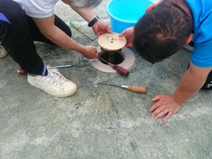 いつも、子ども達の登下校以外に学校の環境整備を行っています。今日は、校庭に設置してあるスプリンクラーの調子が悪いので直していました。(5月25日)