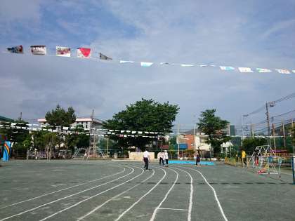 午前中雨でしたが、午後から晴れ間が見え始めてきました。運動会の準備をしました。(5月27日)