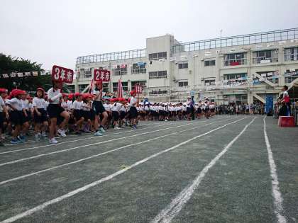 入場行進の後、昨年度優勝の赤組と準優勝だった白組から優勝旗・準優勝盾の返還がありました。(5月28日)