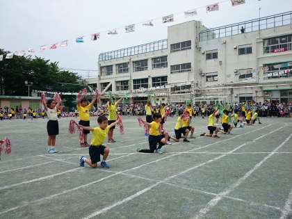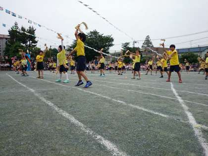 今年の2年生はバトンを使ったダンスに挑戦しました。きらきらかがやくような笑顔の子どもたちがいきものがかりの「ジャンプ」に合わせて楽しくおどりました。(5月28日)