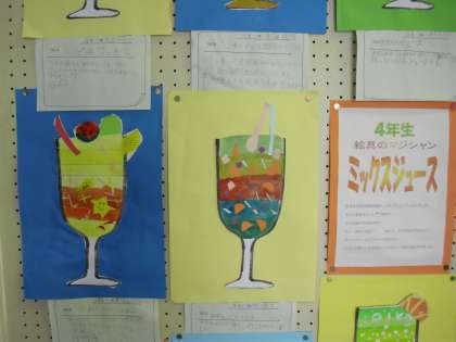 ミックスジュースは1階図工室前、2階掲示板にて展示中です。