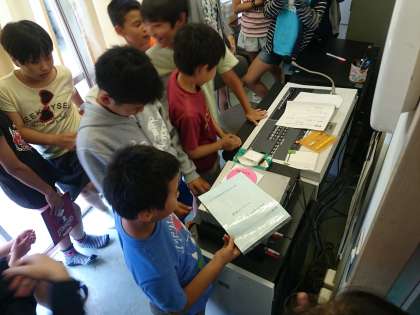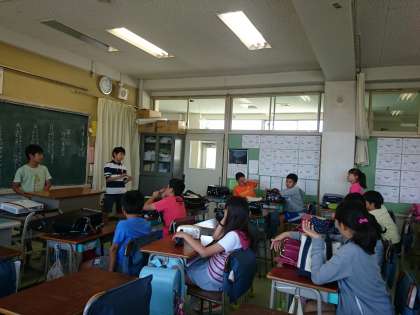 グループごとに反省をした後、放送室で放送の確認をしました。(6月2日)