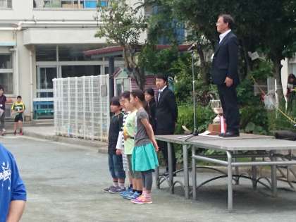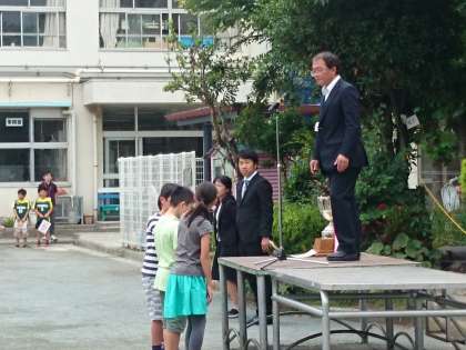 久しぶりの児童朝会でした。担当の6年生が代表で挨拶をしました。(6月6日)