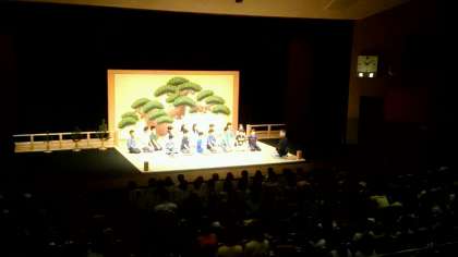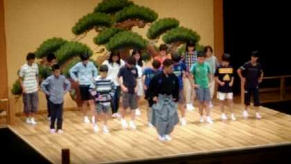 狂言を鑑賞しました。ワークショップでは、狂言で行われている歩き方や話し方を体験しました。(6月7日)