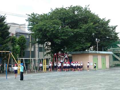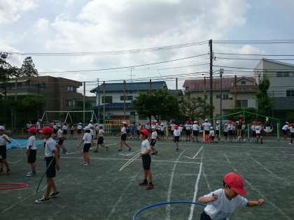 今日は、校庭でいろいろな用具を使って体を動かしました。(6月10日)