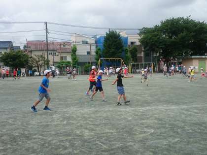 今朝は、キッズ班に分かれ、体育館では何が通り過ぎたかを当てるゲームを、校庭ではふえおにをしました。(6月16日)