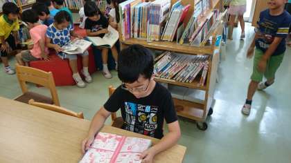 雨が降って校庭遊びができないときさ、図書室で本を読んでいる子ども達がいます。(6月22日)