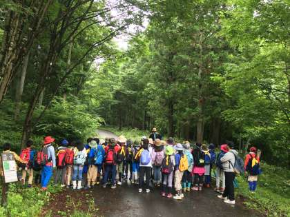雨が止んだので、21世紀の森へハイキングに行きました。寝不足の身体に、ハイキングは、少し厳しかった子もいたようです。それでも、森の中でおいしい空気を身体に取り入れ、元気を取り戻していました。やまびこを体験することもできました。(6月30日)