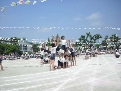 特に組体操は、毎日汗まみれ砂まみれになりながら必死に練習し、技ができるようになっただけではなく、本気になることの大切さ、友達とつくりあげることの喜びなどたくさんのことを学びました。お互いを信頼しあい、心を一つにしてつくりあげました。