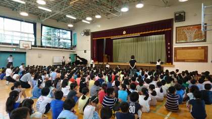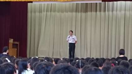 校長先生から、学年ごとに成長したことを具体的な場面を紹介しな場面を話しながら紹介していました。(7月20日)