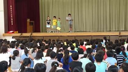 終業式に、みんなの代表として頑張ったことを発表しました。(7月20日)