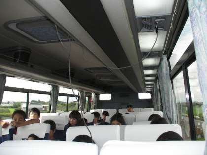 杉並木公園に着くまで、バスレクの子ども達がみんなを楽しませています。(8月1日 9時50分)
