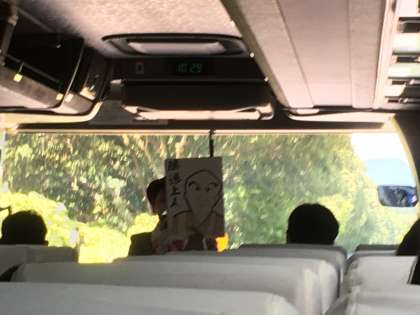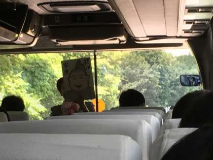バスガイドさんが、日光の話をしてくれました。子どもたちもよく話を聞いています。(8月1日 10時35分)