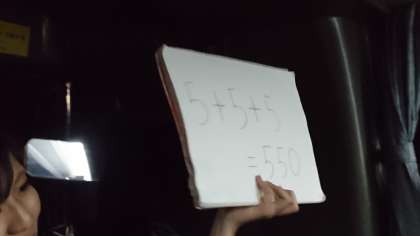 足尾銅山から宿舎に向かっています。バスガイドさんがクイズを出してみんな楽しんでいます。(8月1日 14時27分)