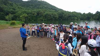 湯の湖で集合写真を撮りました。(8月2日 8時15分)