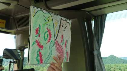 男体山が見えるところで伝説の話を聞きました。(8月3日 8時40分)