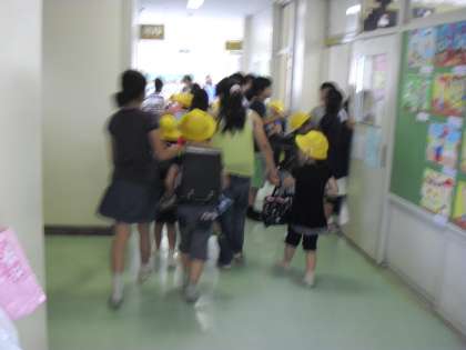 1年生は6年生に迎えに来てもらい、各集合場所まで行きました。