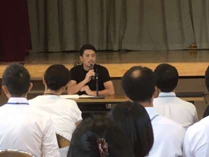 その後、元Jリーガーで、日本代表も務められた鈴木啓太さんをお招きして講演会を行いました。「子供のベストサポーターになろう〜心と体」という演題で、子育てや教育の参考となる大変素晴らしいお話を聞くことができました。(9月14日)