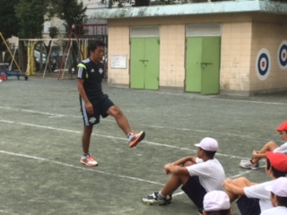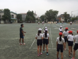 みしまの森学舎で一緒に活動をしている東深沢中学校の保健体育科の先生に来校いただき、6年生が体育の授業で指導をしてもらいました。2校時に体育館で走り高跳びの指導、3校時が校庭でハードル走の指導でした。体育の専門性の高い中学校の先生から分かりやすくポイントを指導していただき、6年生も見る見るうちに上達することができました。写真は、3校時のハードル走の指導の様子です。今後も、こうした東深沢中学校と連携した活動を進めていきます。(9月27日)
