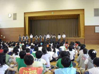 次に中学生から学校生活や部活動の紹介を聞きました。中学校とはどういうところかを知り、中学校に対しての意欲や期待をもつことができました。