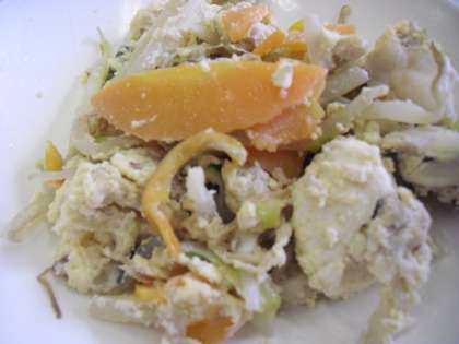 今日は「郷土料理を食べよう」の日で、沖縄料理でした。ゴーヤチャンプルのゴーヤは苦味があるので食べやすくなるようにと少し苦味をおさえて調理しました。みんな、おいしくいただきました。