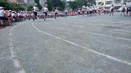 6年生にとって、小学校生活最後の徒競走です。6年間の思いを胸に最後まで全力でコースをかけぬけました。(5月27日)