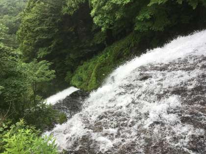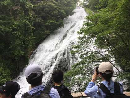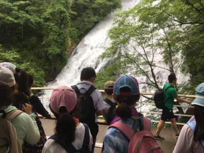戦場ヶ原を過ぎると、雄大な湯滝を見ることができました。間近に見える迫力満点な湯滝に子供たちも感動していました。(7月24日)