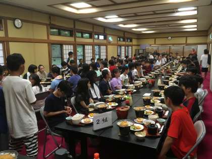 東観荘での最後の夕食です。ハイキングをして、お腹がすいたので、とても美味しかったです。(7月24日)