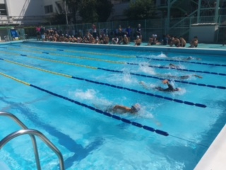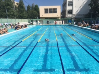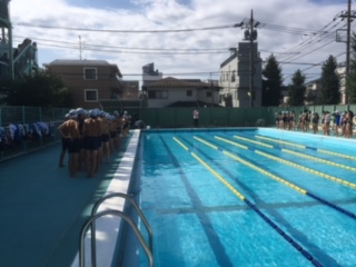 今週は、天気に恵まれませんでしたが、今日、9日(土)は、すっかり晴れて6年生の水泳記録会が行われました。今年の水泳で練習の成果を出そうと子どもたちは、一生懸命がんばりました。結果は、世田谷区全体で集計して、後日、一人一人の子どもたちに記録証を渡します。6年間、お世話になったプールにも感謝しました。(9月9日)