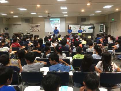 午後は、中央防波堤埋め立て処分場を見学しました。サンドイッチ工法で埋められたごみの山を見ました。あと50年で埋め立て処分場がいっぱいになってしまうことも知りました。(9月26日)