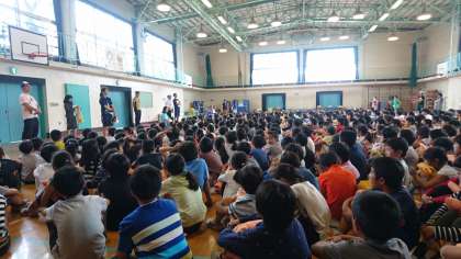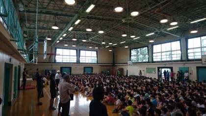 今日は、2次避難の予定でしたが、天候の関係で体育館への避難となりました。(10月3日)