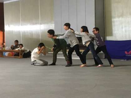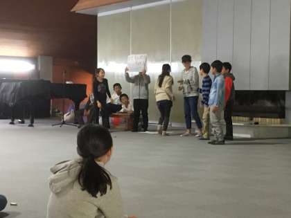 各班が知恵をしぼったおもしろい出しものを見せてくれました。(10月17日)